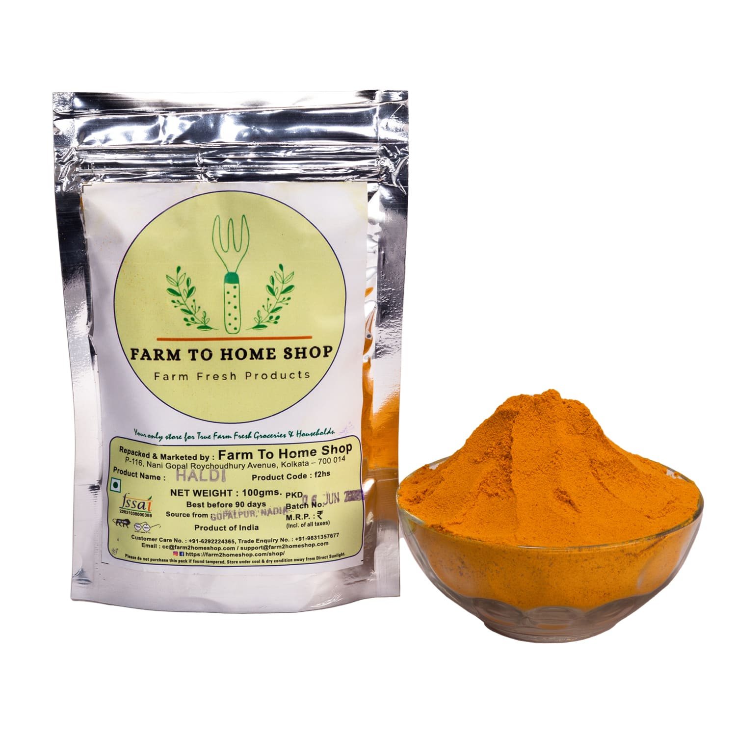 Add a golden touch to your meals with Farm To Home Shop Pure Turmeric Powder (Haldi). Sourced from the finest turmeric rhizomes, this essential spice is celebrated for its brilliant yellow hue, warm, earthy aroma, and distinct flavor. Our Haldi is ground to a fine consistency, ensuring it is 100% pure and free from any artificial colors or additives, preserving its natural potency and goodness.